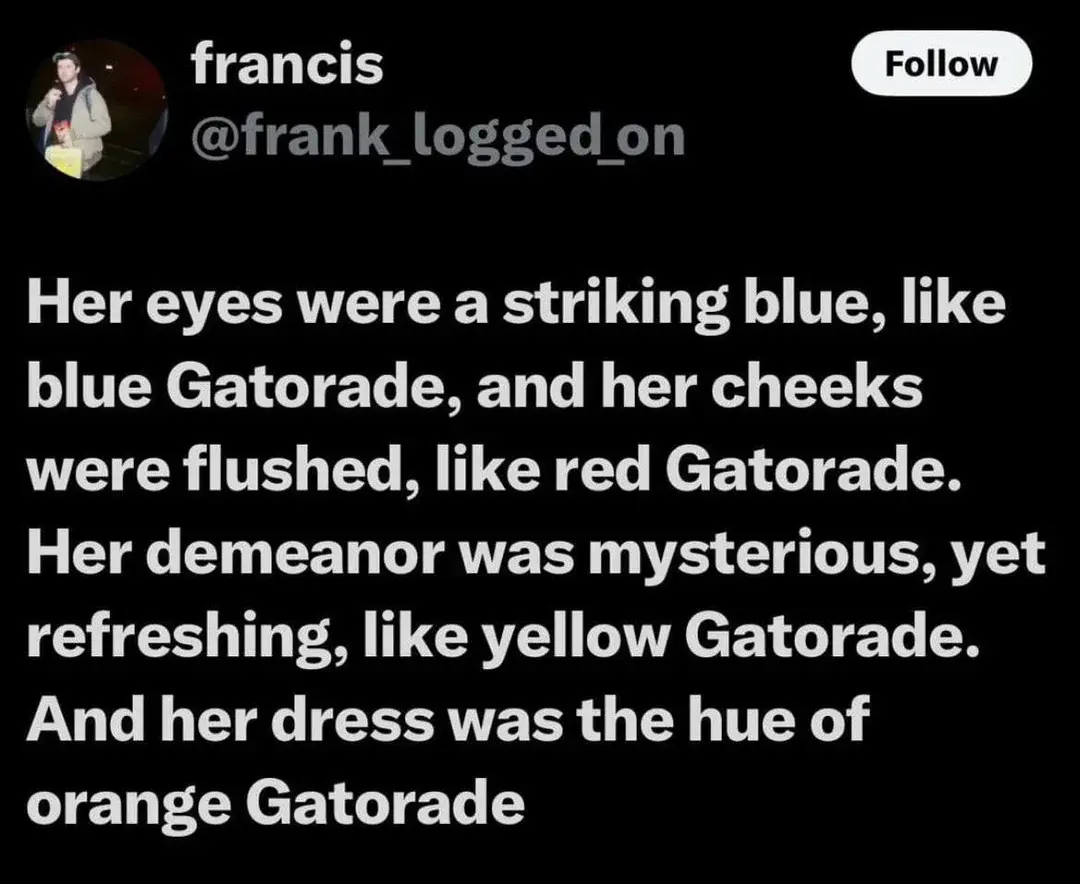 This was written by a guy who had nothing but sports for a career path that got an injury which meant they would never go pro and they had to switch majors to literature, thinking that writing is “hella easy bro”.