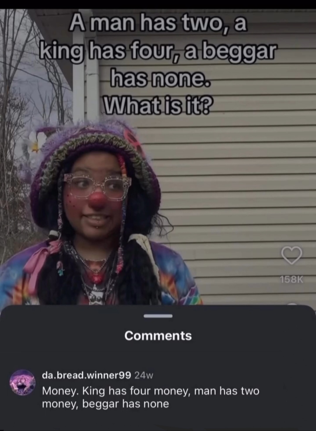 People don’t believe that answer because it would be more like “King has 1000, Man has 1, Beggar has 0”