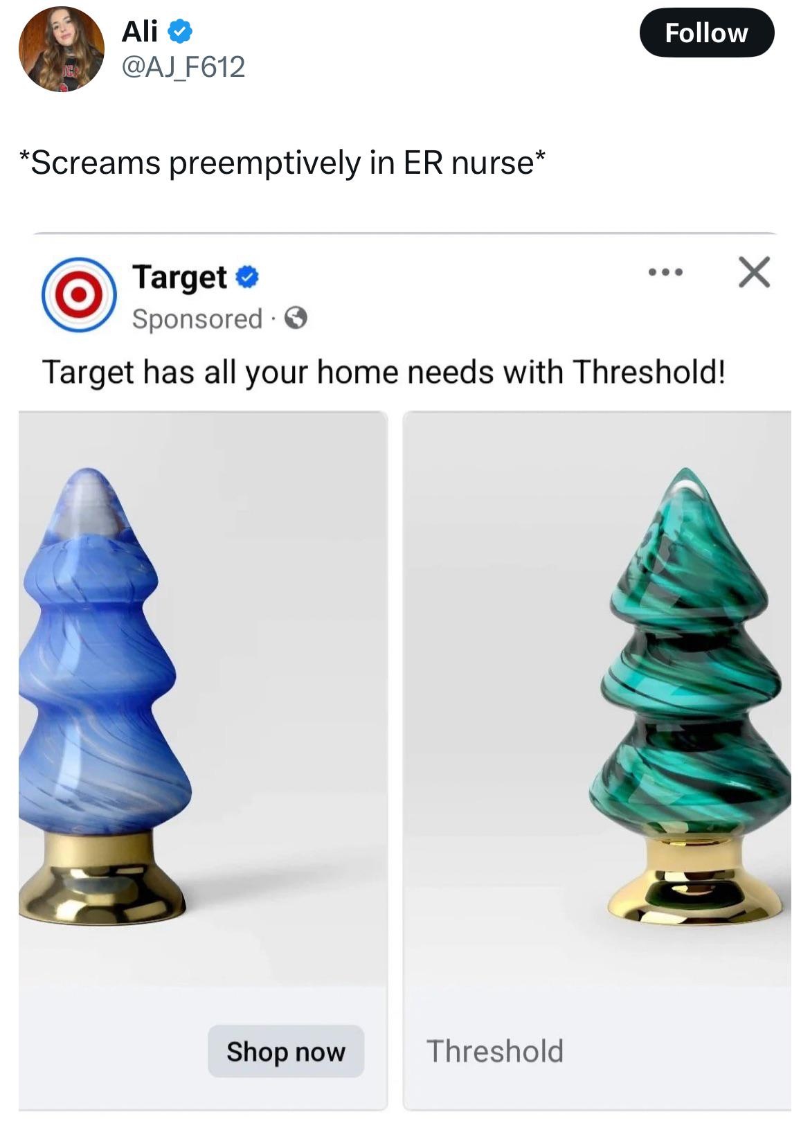 I’m so confused…are those actual butt plugs or weird ass mock christmas tree decorations? Both?…depending on your mood?