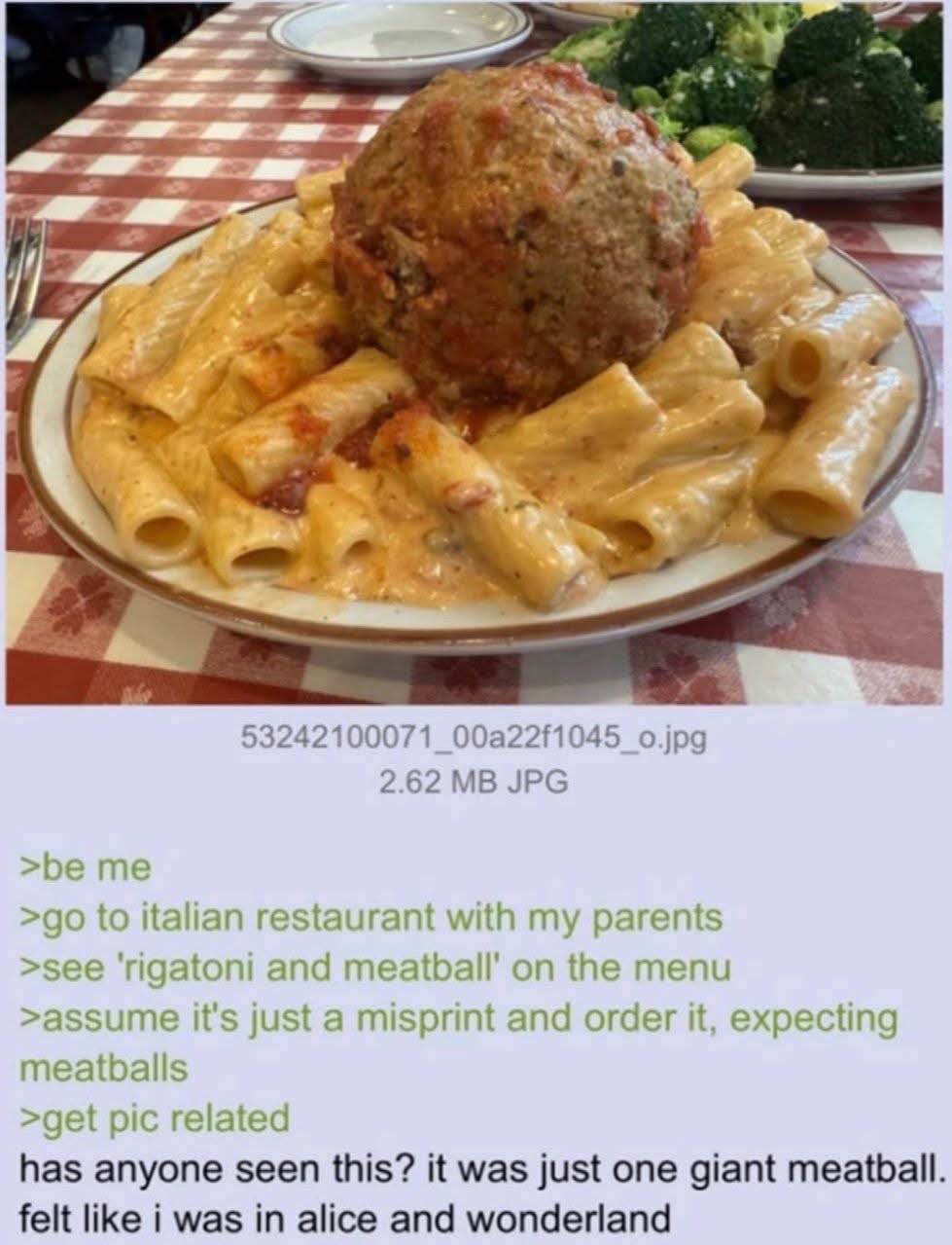 🍹Early to RISA 🧉@sh.itjust.worksM to Greentext@sh.itjust.works · 2 months agoAnon eats Italiansh.itjust.worksimagemessage-square84fedilinkarrow-up1637arrow-down17