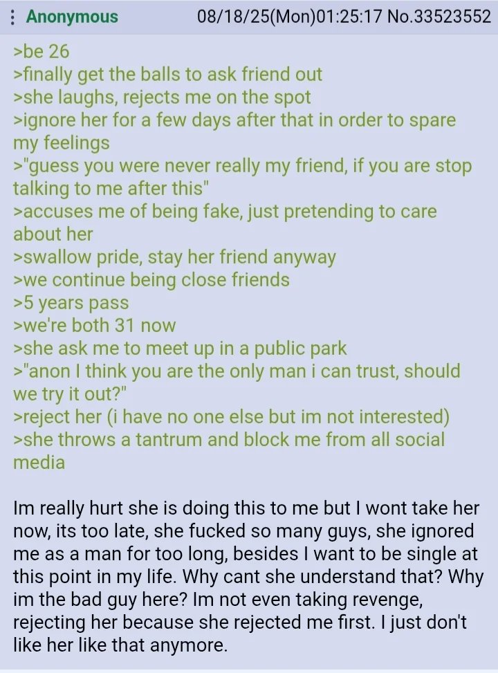 Tell me you have never been next to an in-group of women when one of them have been turned down, without saying you have absolutely no clue about inter-female dynamics and discussions.