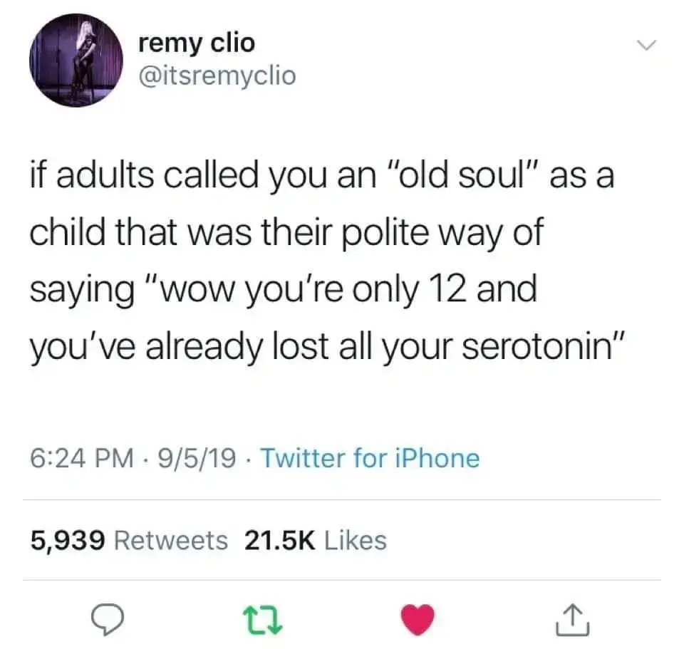 Old soul just means you’ve had to come back more than most. Not a compliment.