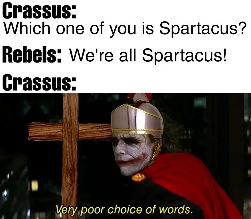 Unfortunately for them, as the Romans were not exactly shy about punishing large numbers of slaves or rebels, this simply ended with all of them being crucified.