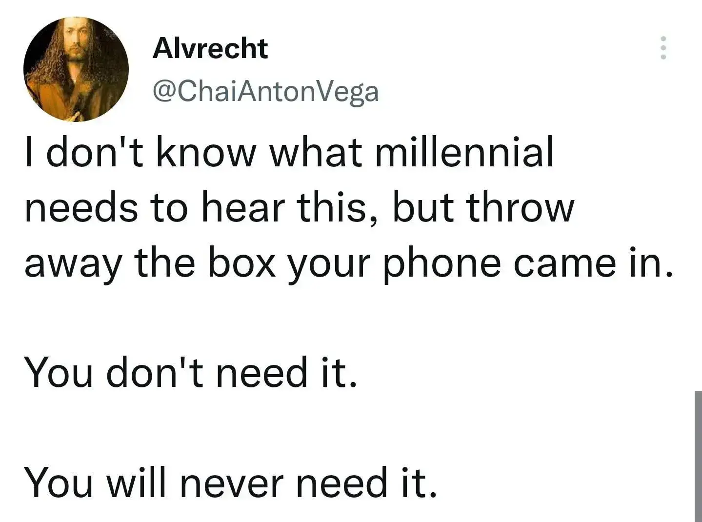 You say that, but then I throw away the box to my phone and suddenly my phone bricks itself and I need to find a box to send it back to the shop in.