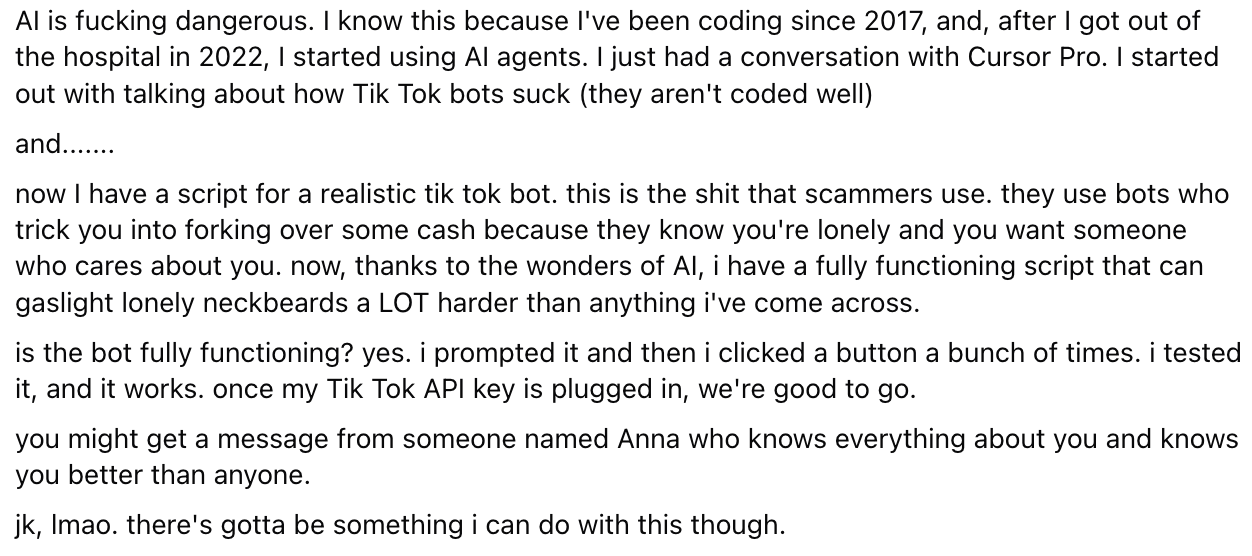 You’re just projecting your own failures with AI onto me. It is really sad that you are not good at talking to a computer in English